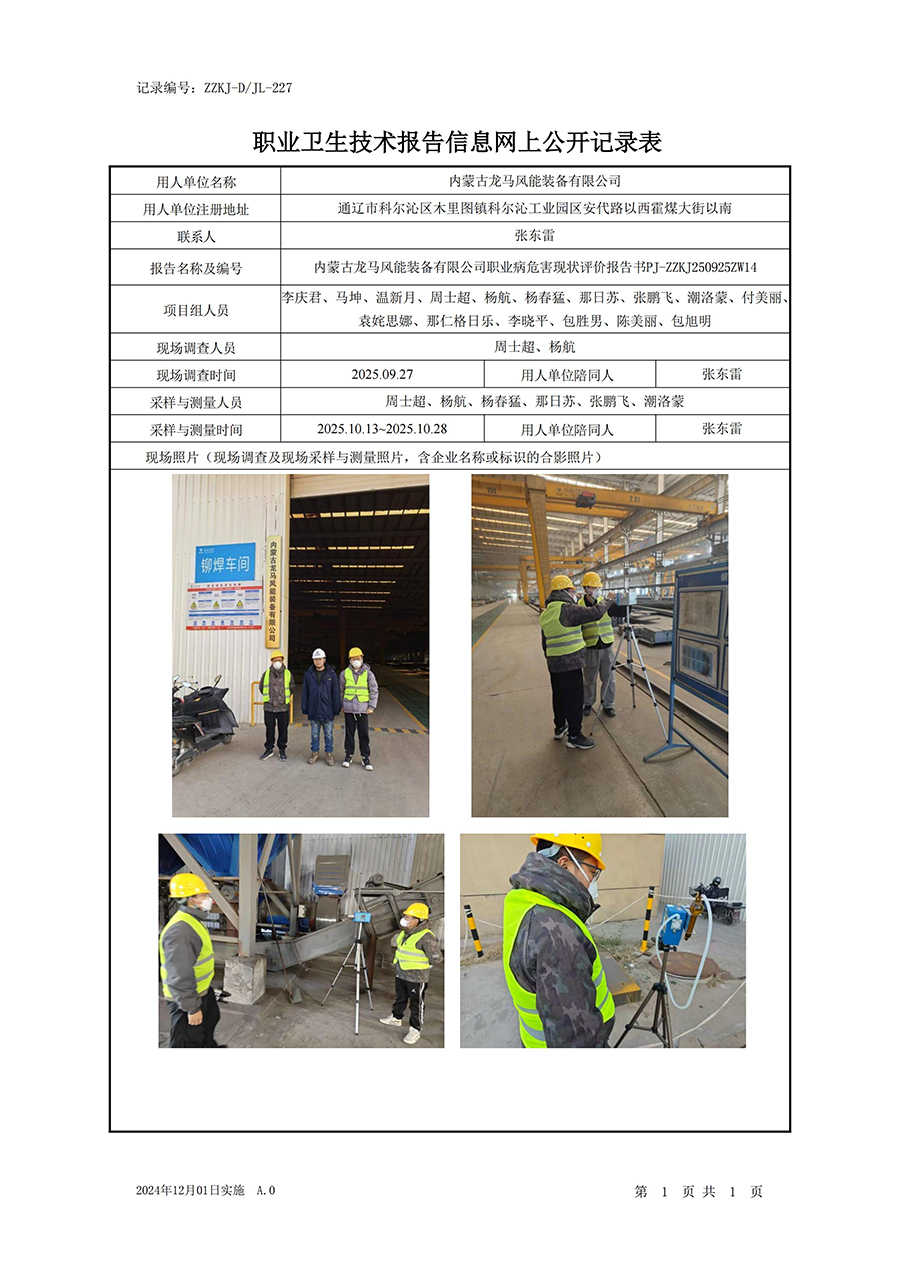 内蒙古龙马风能装备有限公司职业病危害现状评价报告书(PJ-ZZKJ250925ZW14)